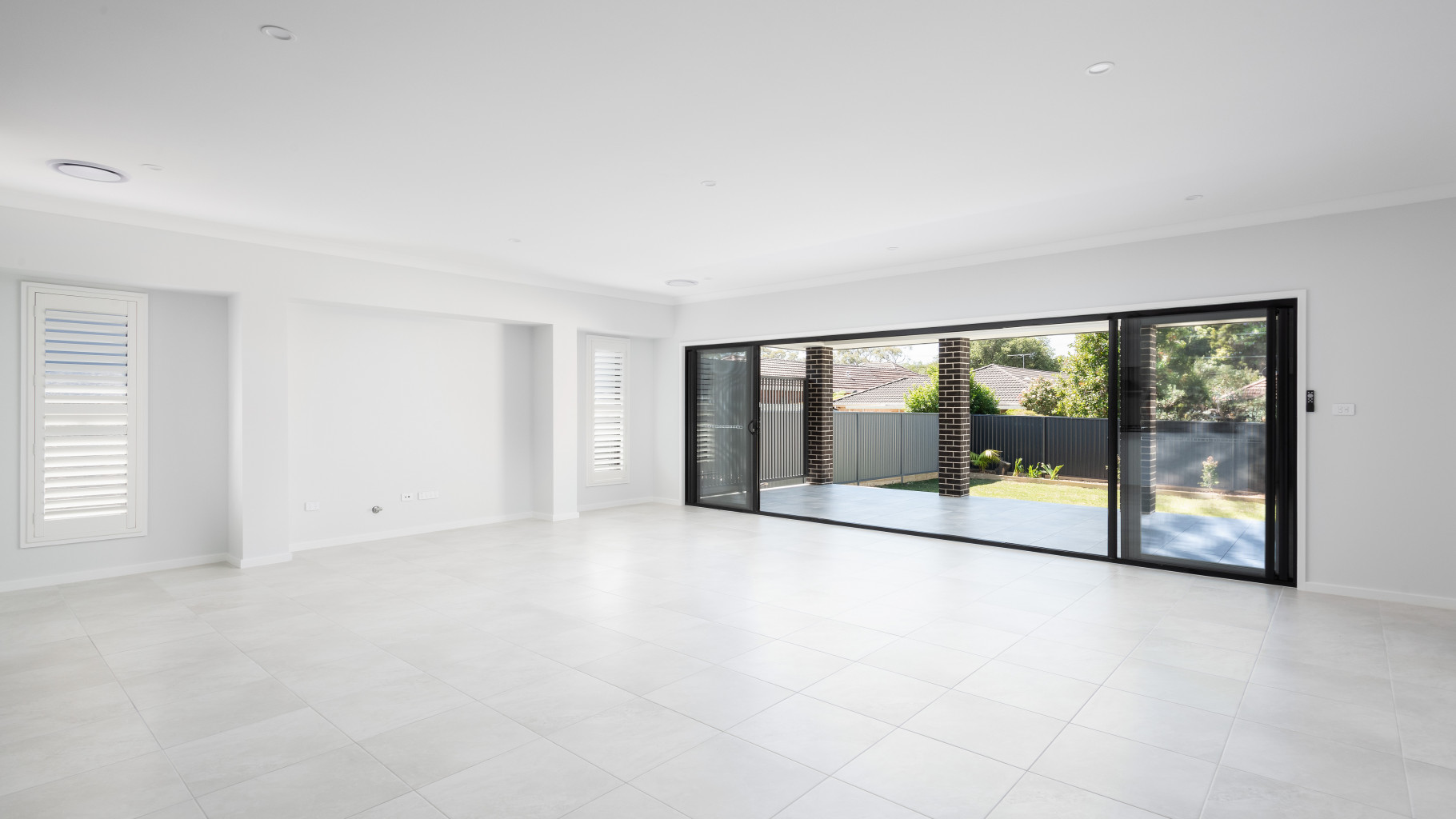 - Oversized living and dining space with tiled flooring opens out to the large covered outdoor entertaining and level grassed yard