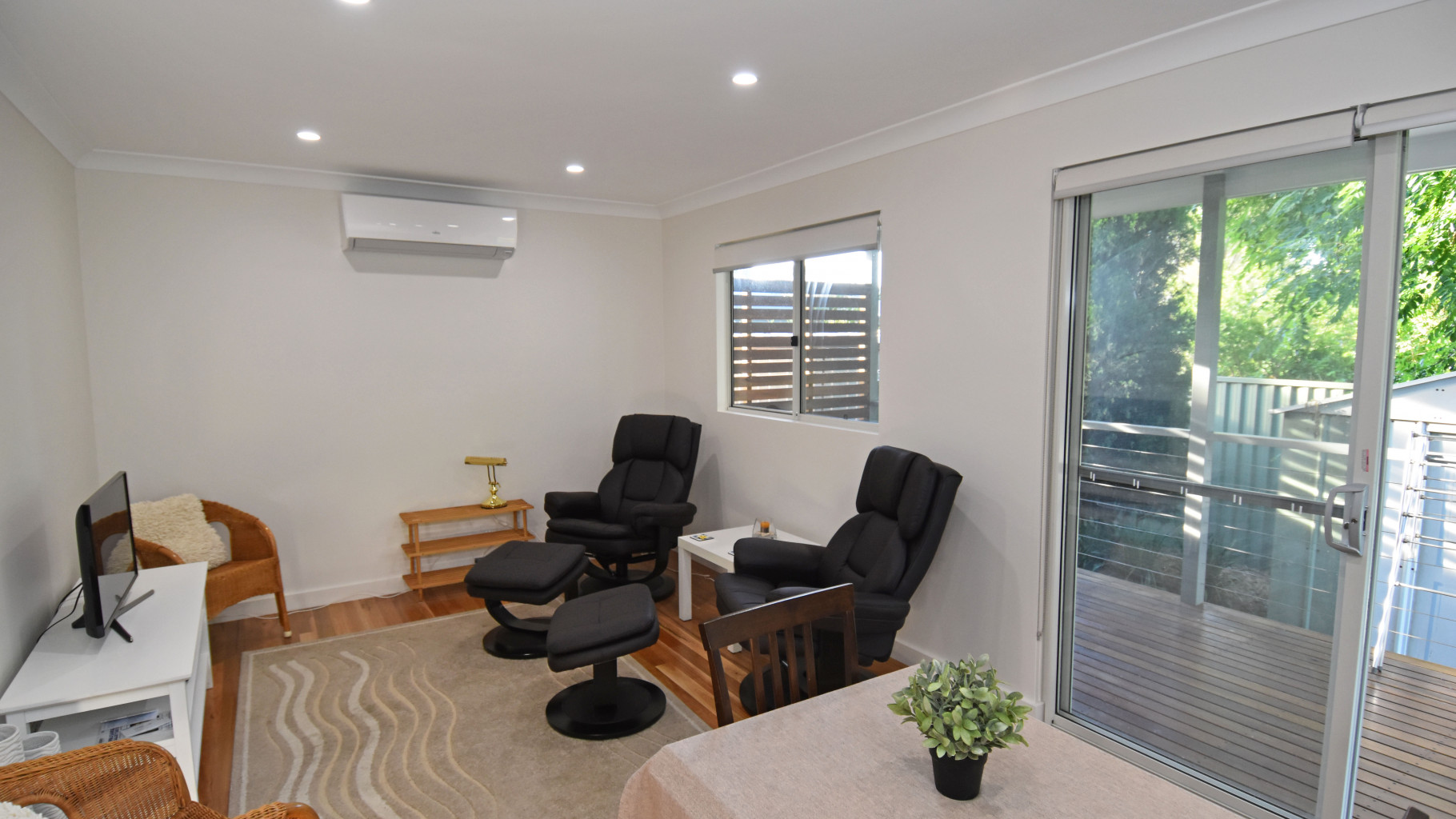 - Spacious open plan living and dining room with air conditioning