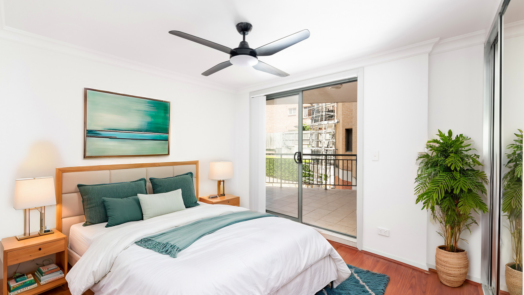 - Two generously sized bedrooms, each with mirrored built-in robes, ceiling fans, and access to an additional shared balcony, the master bedroom also boasts a fully tiled ensuite