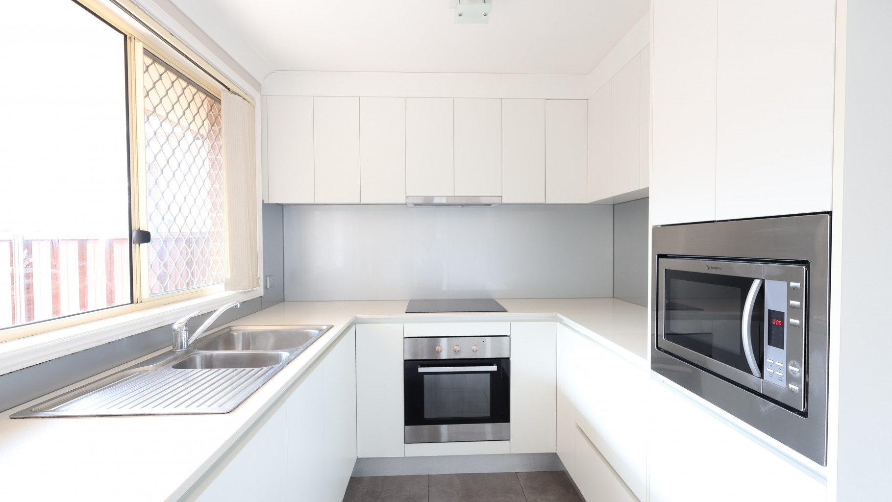 - Modern kitchen with stone benchtops, stainless steel appliances & ample storage