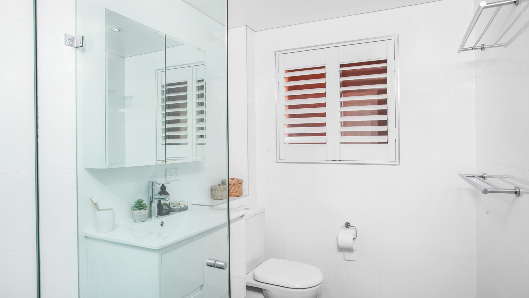 - Stunning bathroom with floor to ceiling tiles and frameless shower glass