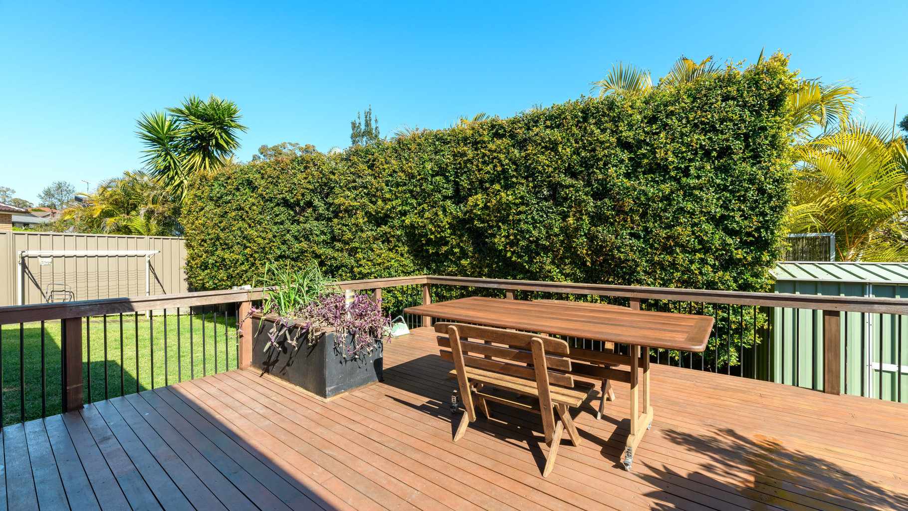 • Large entertaining deck with automatic awning overlooking the private, level and sunlit west-facing backyard