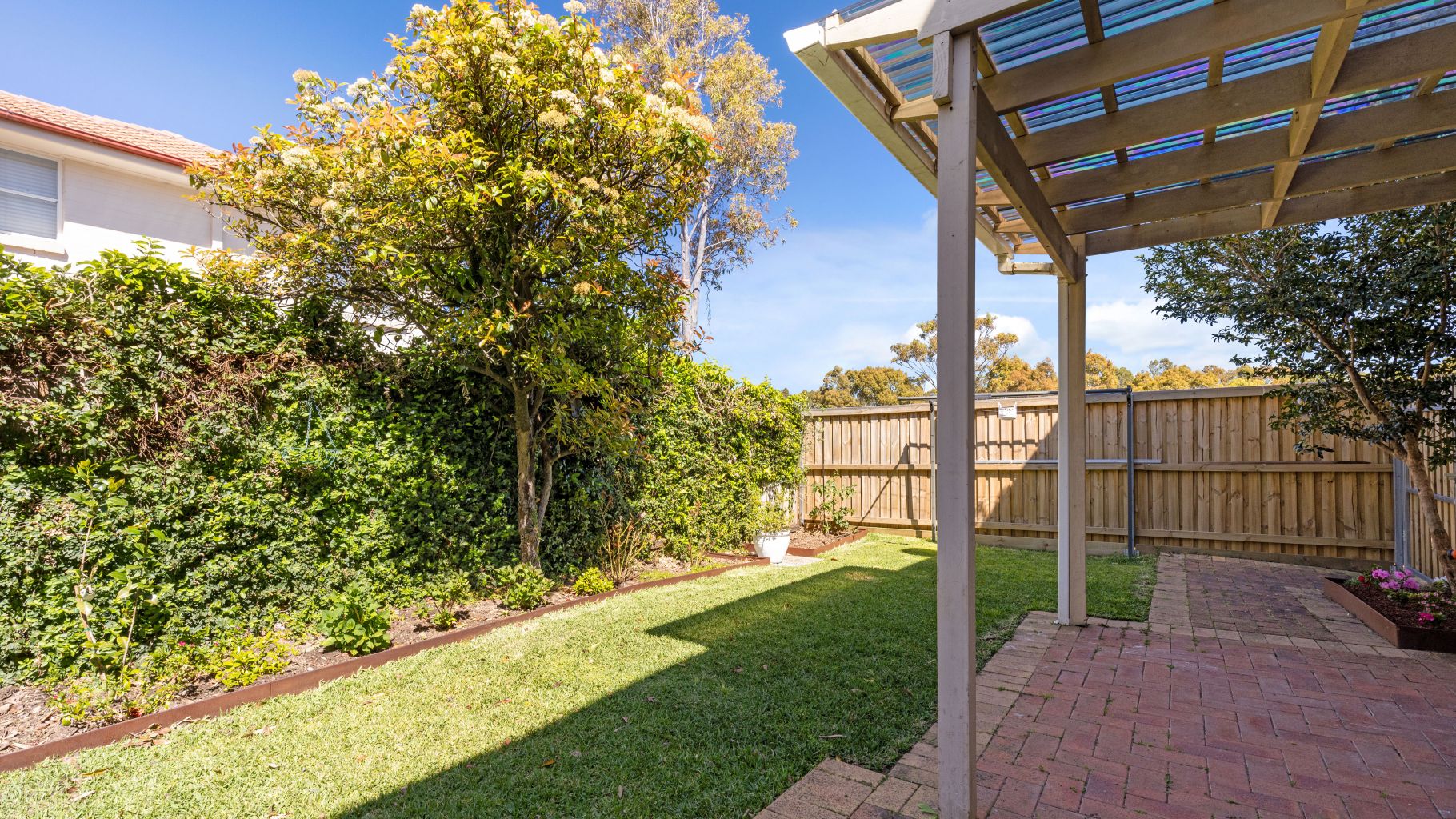 • Level courtyard with grassed lawns & paved entertaining space