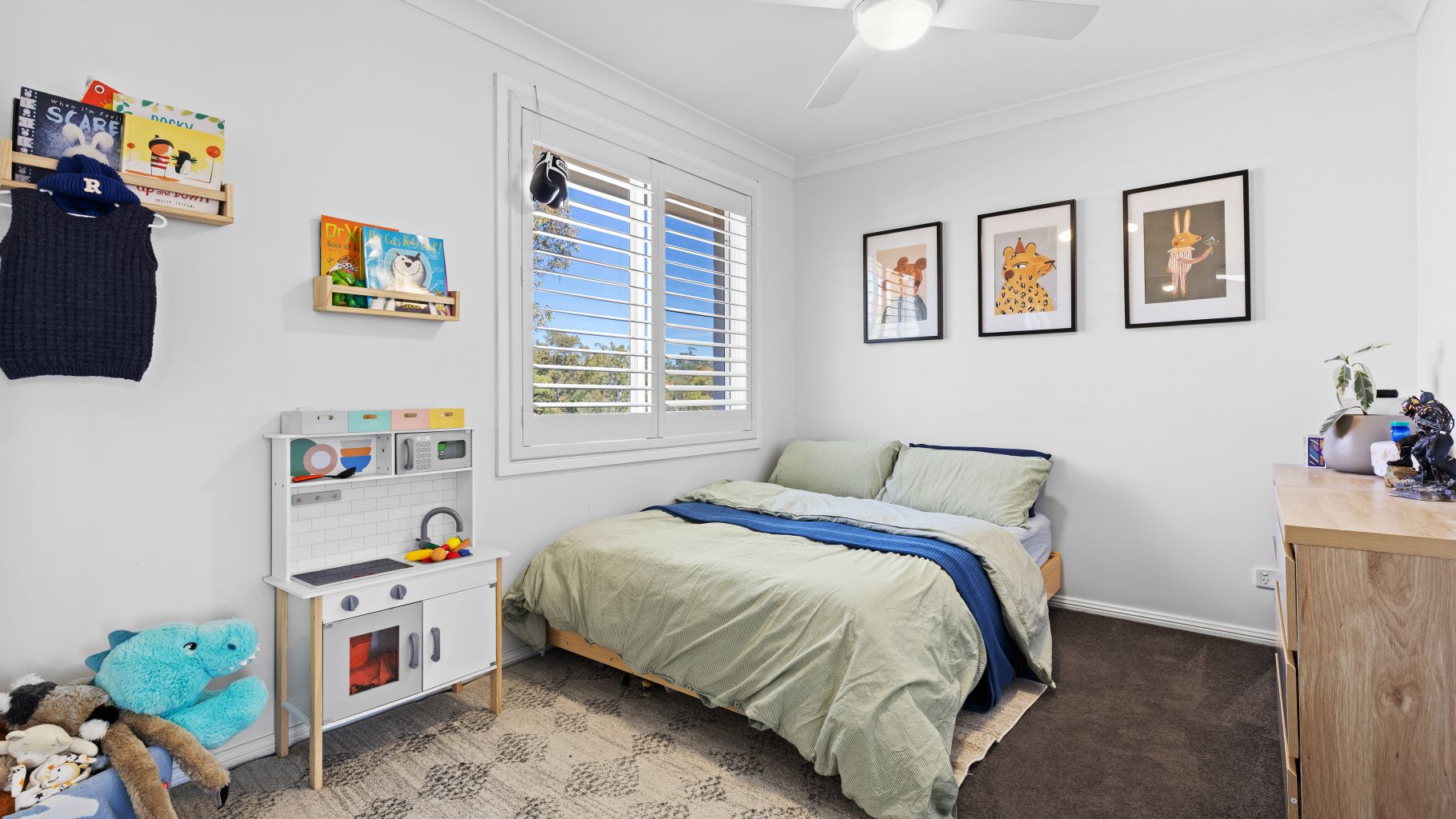 • Tiles throughout living spaces, new carpet to bedrooms, plantation shutters
