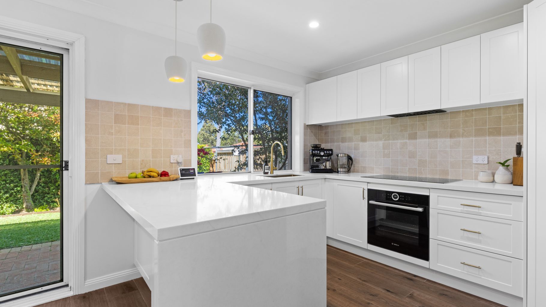 • Kitchen with ample cupboard space, breakfast bar & induction cooktop