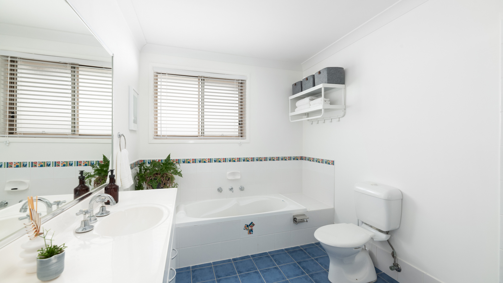 - Immaculately maintained family bathroom features separate bath and shower design with separate linen storage.