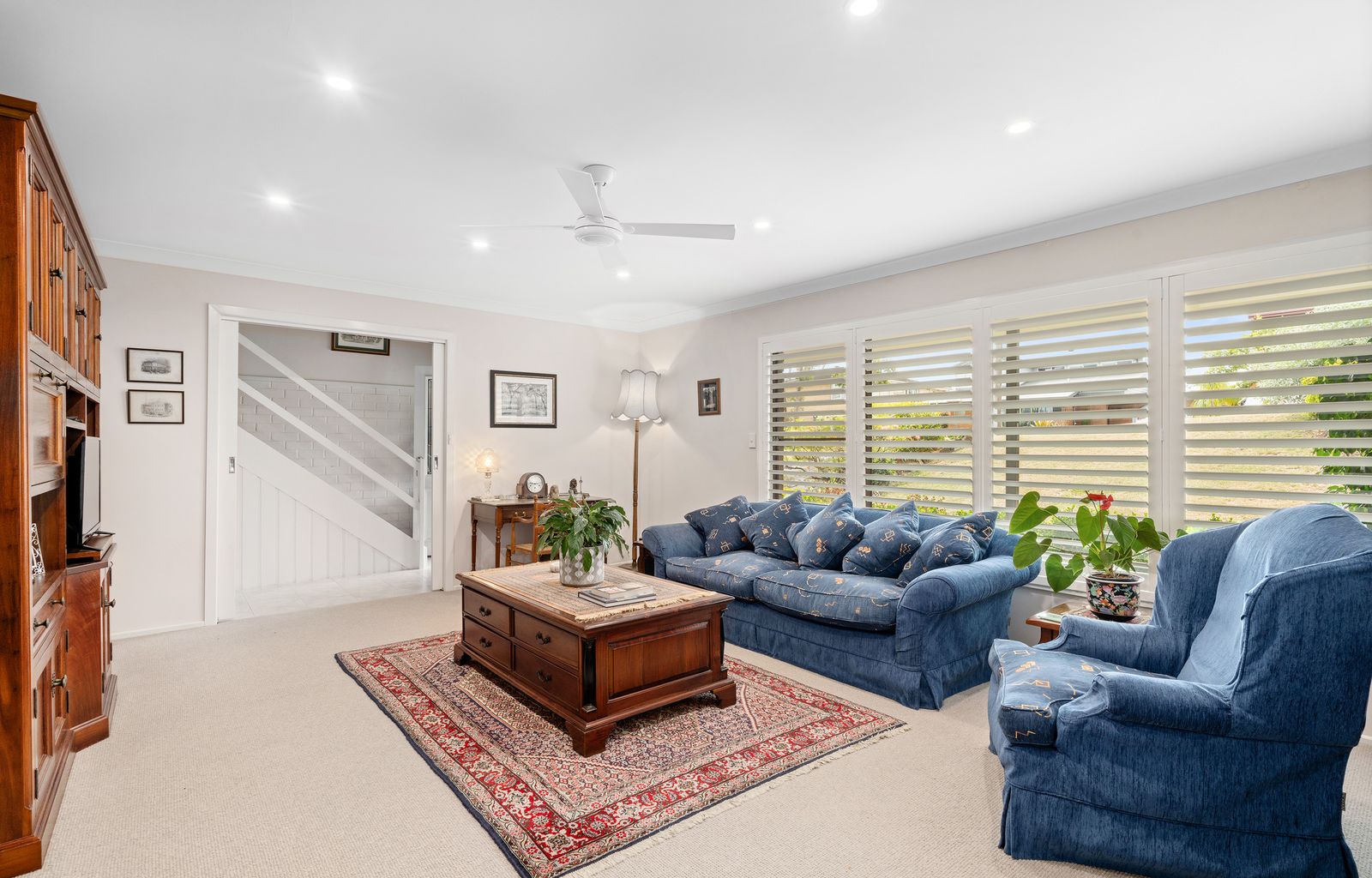 - Living room bright and inviting with a built-in gas fireplace, split system air conditioning and room to host family gatherings and carpeted for comfort.