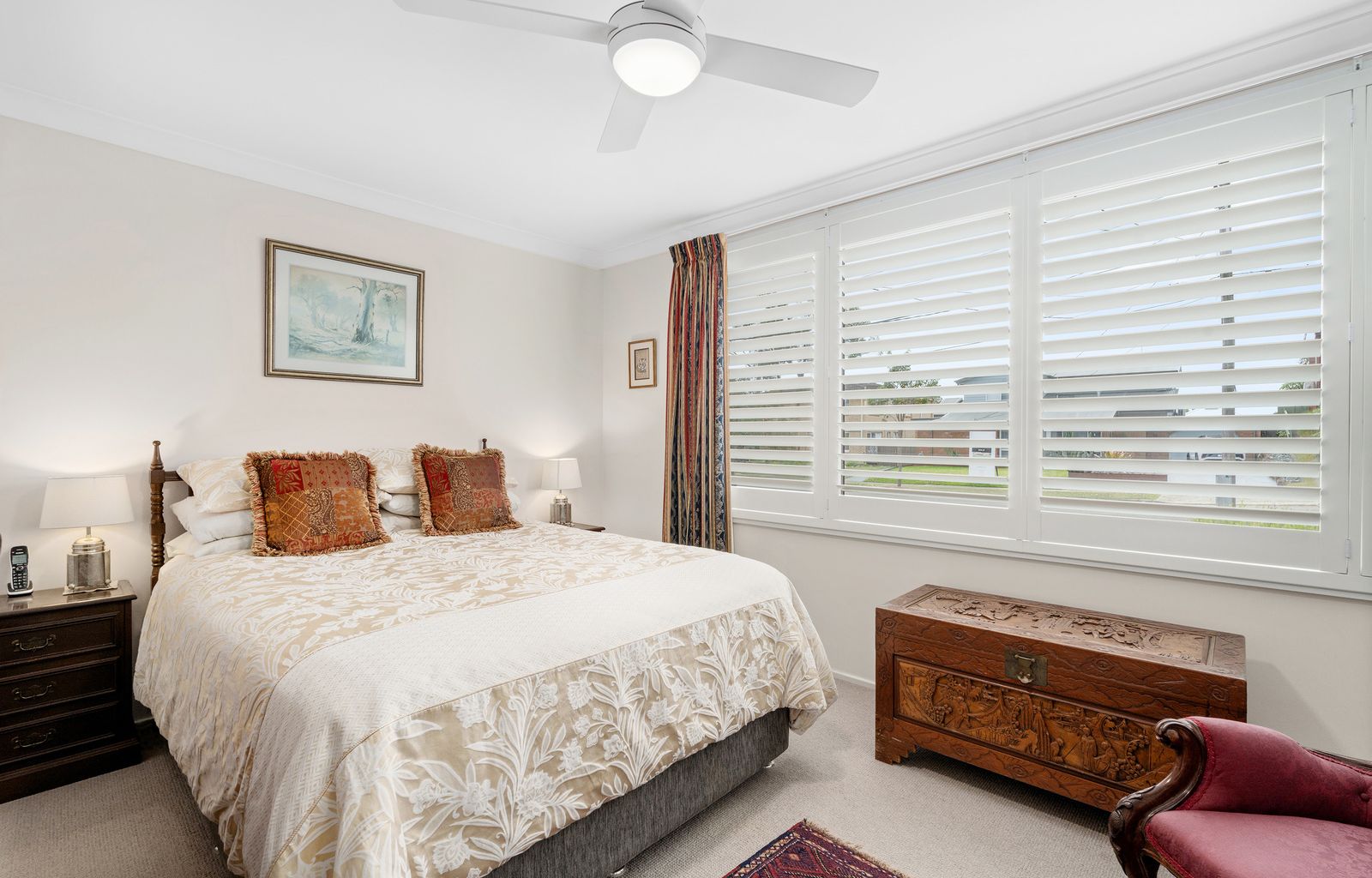 - Main bedroom with two built-in wardrobes, ceiling fan, carpet and plenty of natural light
