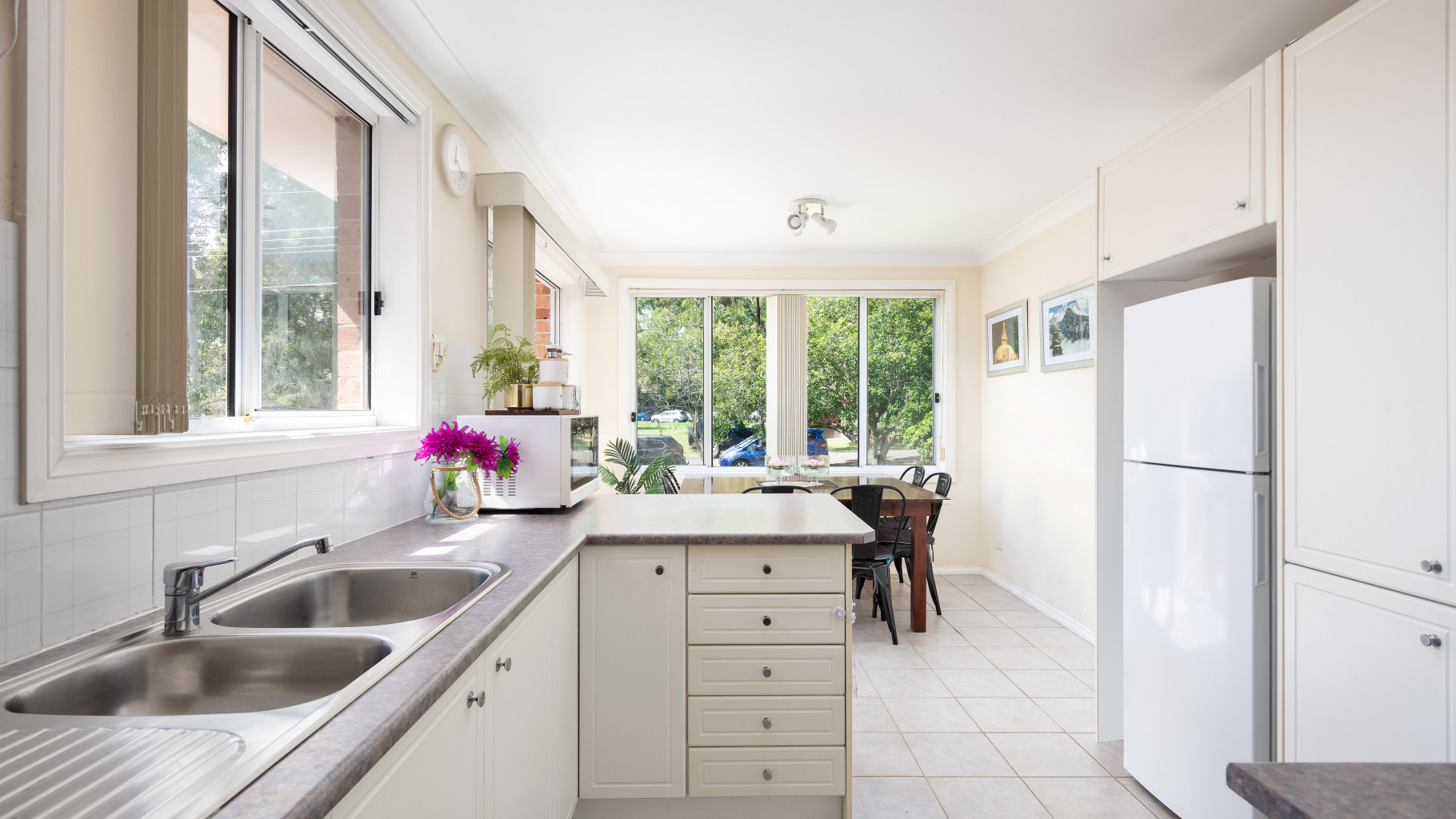 - Practical kitchen with dishwasher, dual sinks, pantry and breakfast bar plus plenty of cupboard and bench space