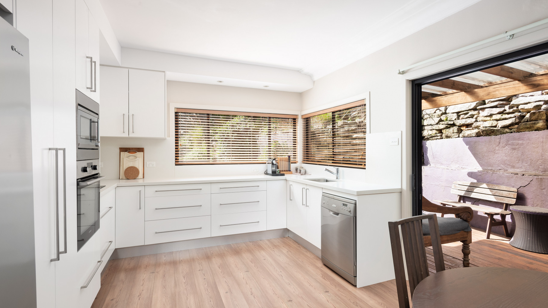 - Modern entertainers' kitchen with stainless appliances, plenty of cupboard and bench space including pantry, adjacent to dining room with easy access to outside.