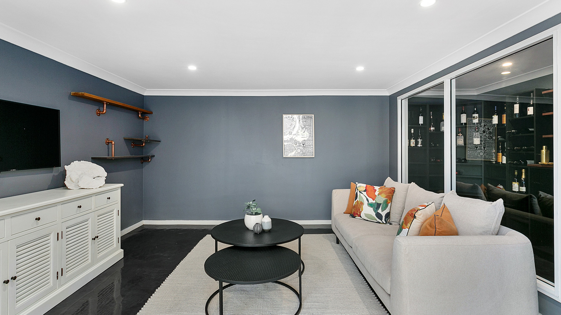 • Indulgent media room with epoxy flooring complete with secured wine cellar