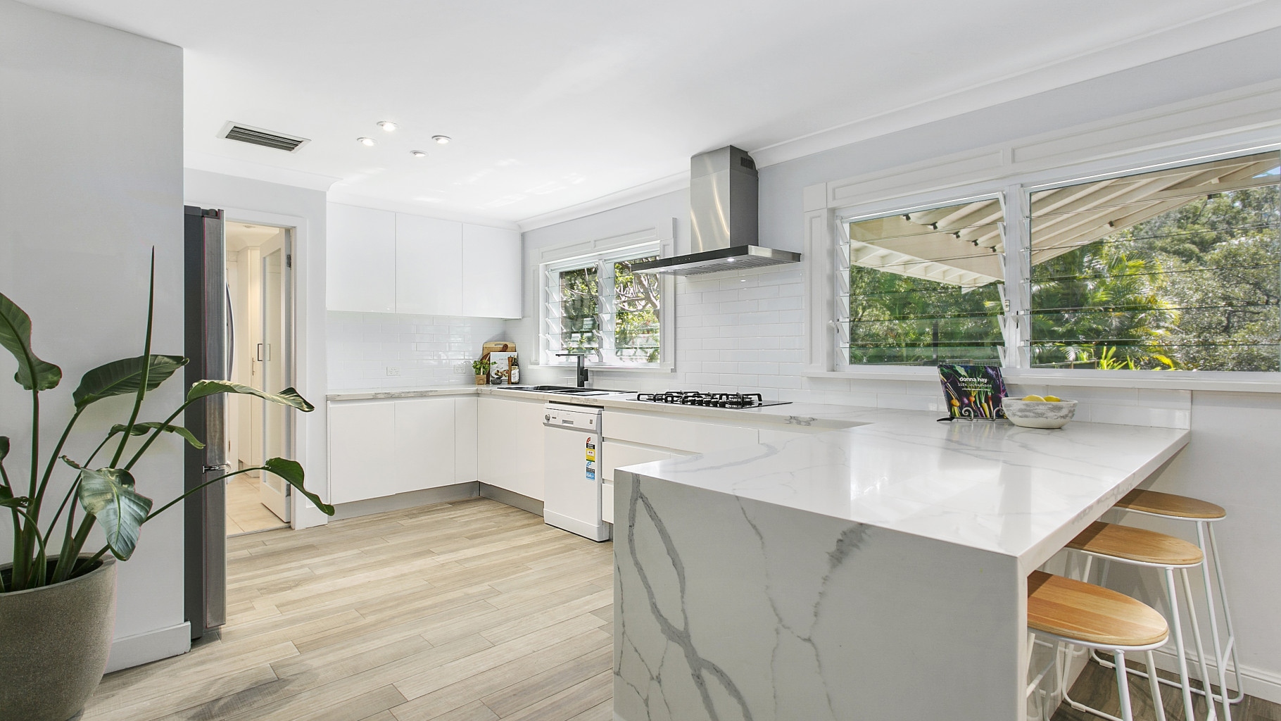 • Stunning spacious kitchen featuring Calcutta marble benchtops, gas cooktop and breakfast bar