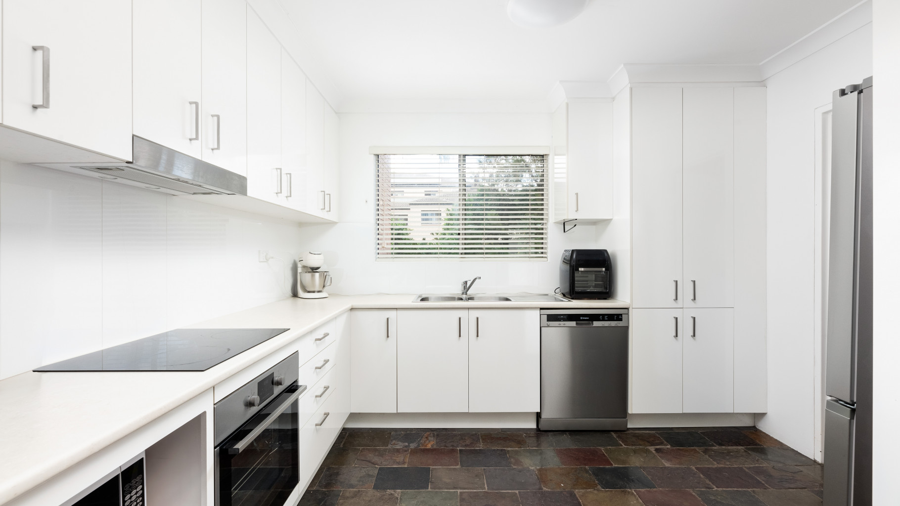 - Generous kitchen with tiled flooring, ample cupboard and bench space, quality Gorenje appliances and dishwasher.