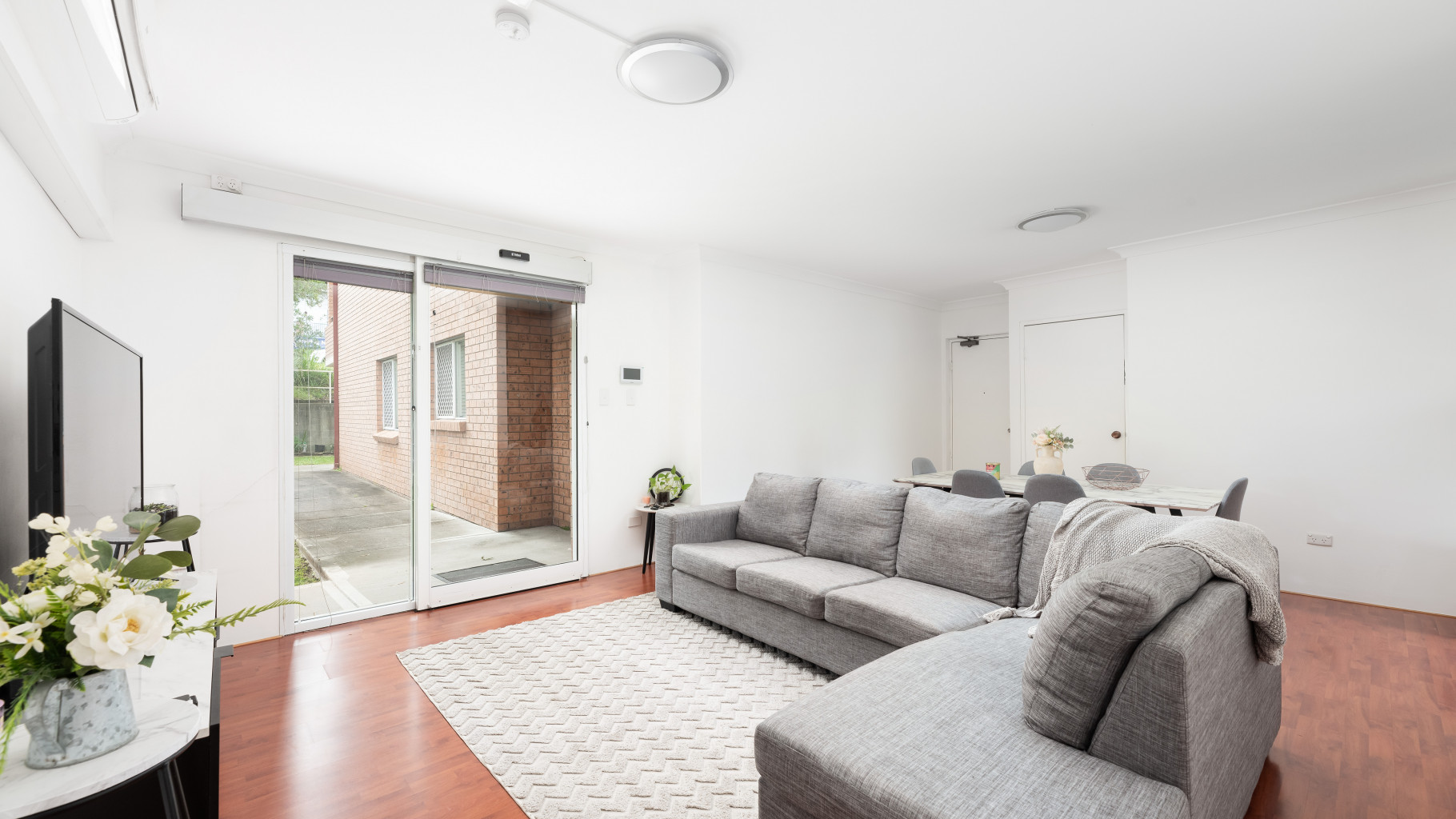 - Combined living and dining with LG split system air conditioning and electronic sliding door access to private entry.