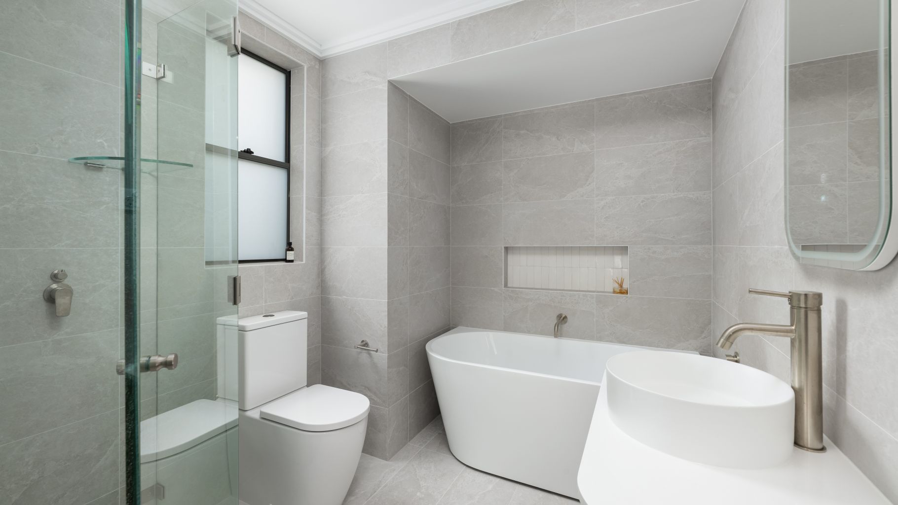 - The main bathroom is beautifully appointed, featuring high-end finishes, spacious shower, and freestanding bath, creating a private sanctuary of relaxation.