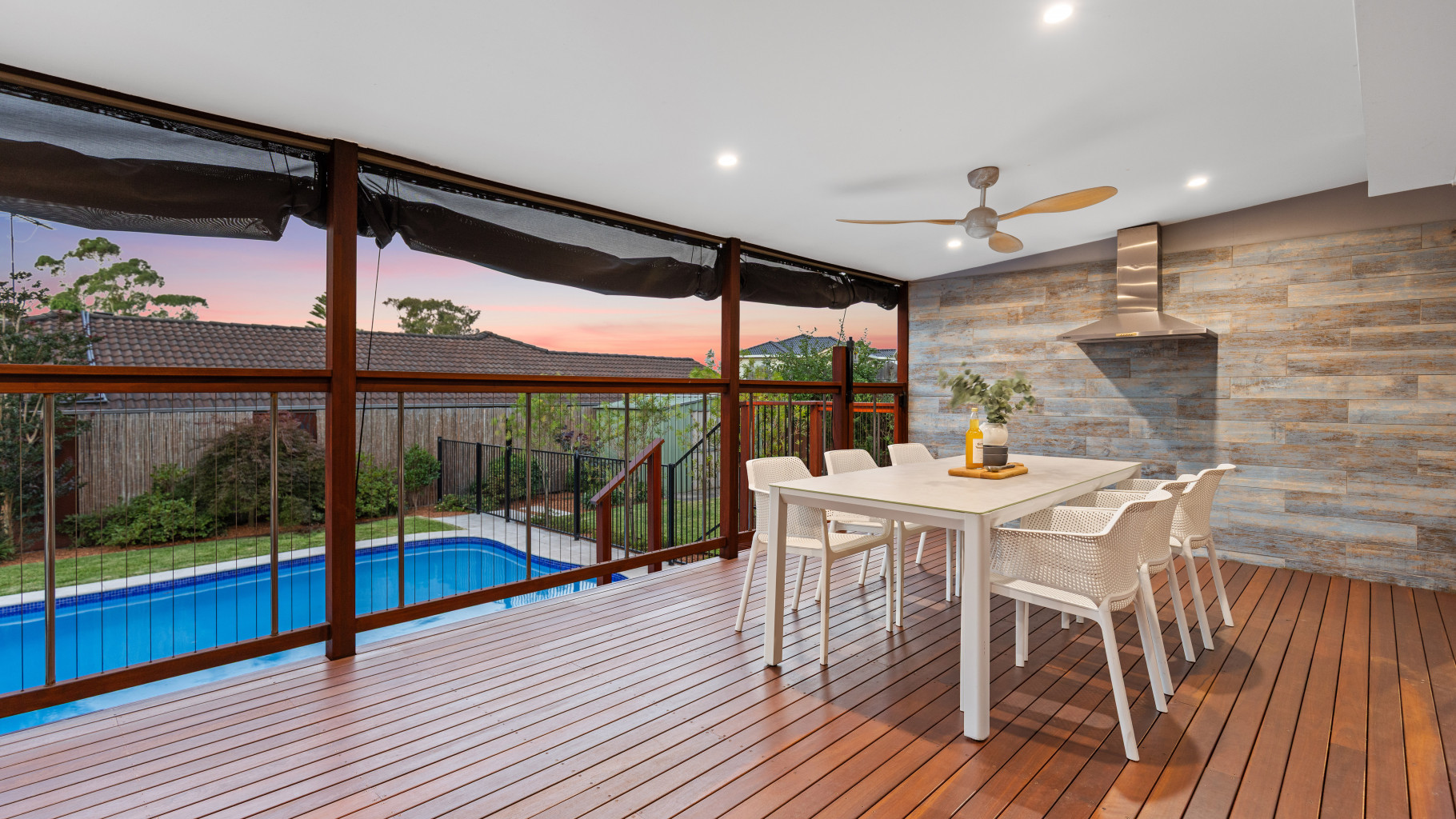- Solar heated salt water pool and expansive covered entertainment deck