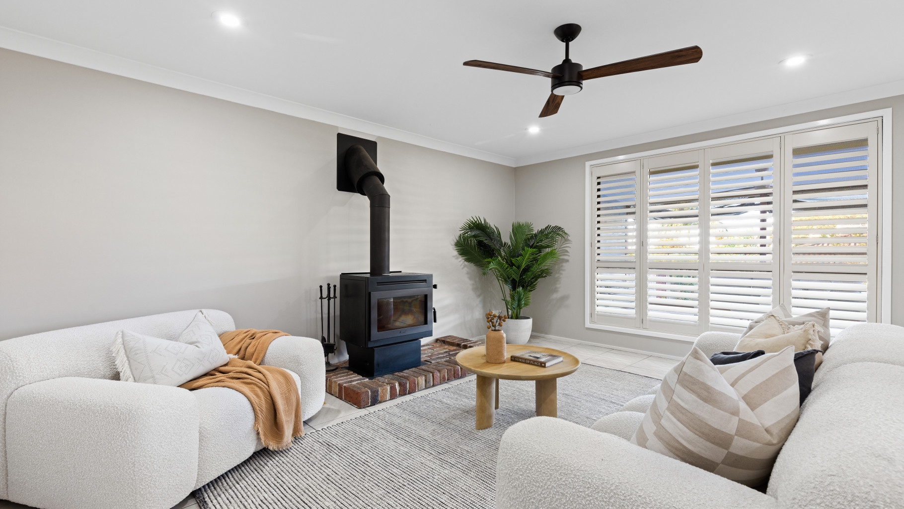 - Masport fireplace and stylish downlighting throughout