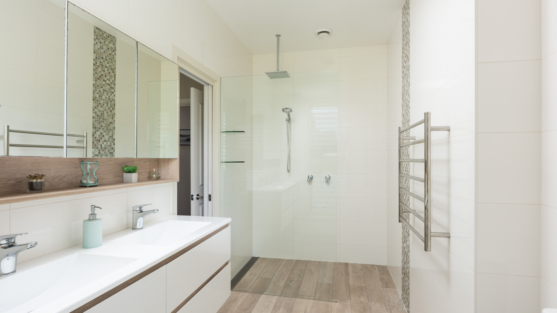 - Master bedroom features mirrored built in wardrobe and fully tiled ensuite complete with floating double vanity, frameless walk in shower with dual shower heads, heated towel rails and mirrored cabinetry.