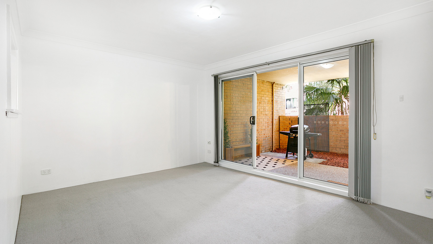 - Two bedrooms with mirrored built in robes and vertical blinds overlook the outdoor area